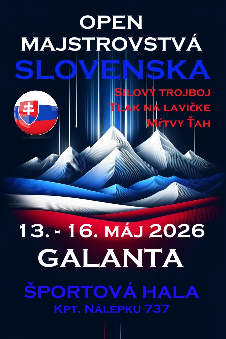 Majstrovstvá Slovenska powerlifting benchpress deadlift Galanta 13. - 16. 2026