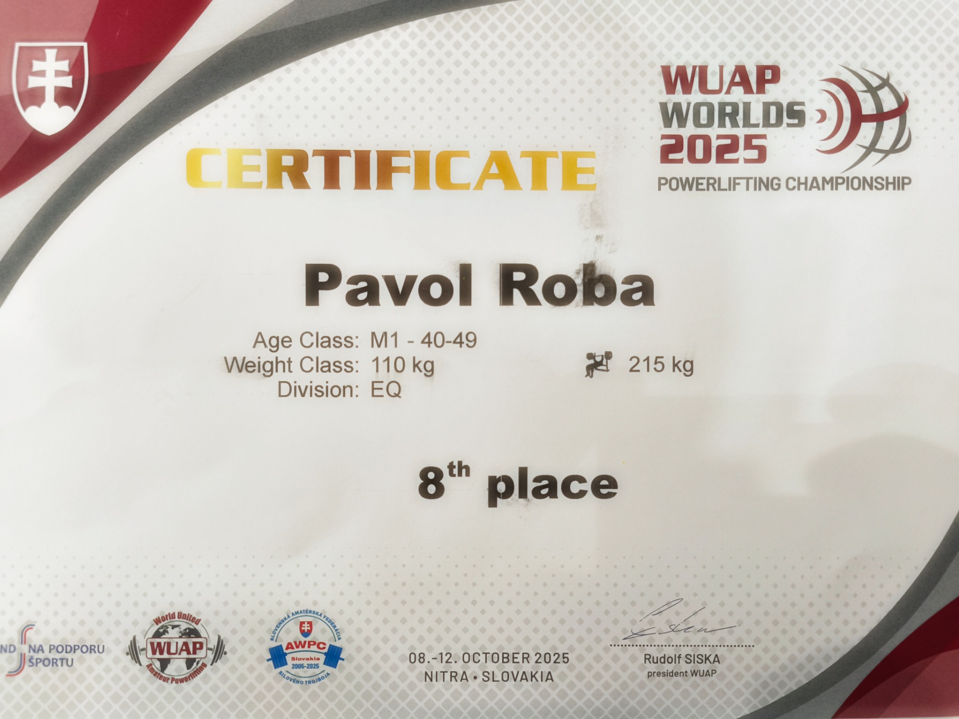 Napriek tomu Pavol ukázal stabilnú silu a skúsenosti, ktoré ho v minulosti priviedli až k medaile. Tentoraz si z Nitry odnáša 8. miesto, no jeho výkon potvrdil, že v budúcnosti sa bude pokúšať o lepší výkon.